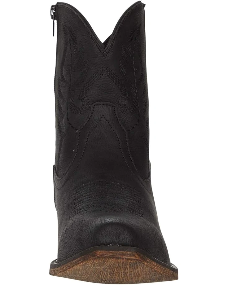 - Short Western boot is made of vintage faux leather upper.